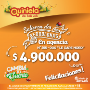 ¡Salieron dos premios de Redoblona en Tilisarao! El día Jueves 15 de Enero, en la Agencia N° 355-000 "Le Gare Nord" de Tilisarao, salió un premio de Redoblona de $4.900.000 c/u ¡Felicitaciones al afortunado ganador!