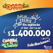 ¡Salió un premio de Quiniela en La Punta! El día Lunes 15 de Diciembre, en la Agencia N° 900-001 "La 22" de La Punta, salió un premio de Quiniela de $1.400.000 ¡Felicitaciones al afortunado ganador!