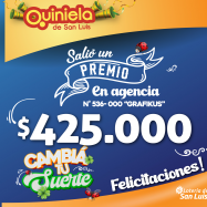 ¡Salió un premio de Quiniela en San Luis!   El día Lunes 23 de Octubre en la agencia Nº 536-000 "Grafikus" de San Luis salió un premio de Quiniela de $425.000   ¡Felicitaciones al afortunado ganador!