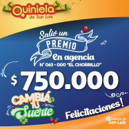 ¡Salió un premio de Quiniela en Juana Koslay!   El día Miércoles 25 de Octubre en la agencia Nº 063-000 "El Chorrillo" de Juana Koslay salió un premio de Quiniela de $750.000   ¡Felicitaciones al afortunado ganador!
