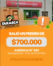 El premio, fue vendido en la Agencia N° 651 de la ciudad de Gualeguaychú, Provincia de Entre Ríos.