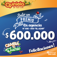 ¡Salió un premio de Quiniela en Tilisarao!   El día Sábado 10 de Febrero en la agencia Nº 030-000 "El Azar" de Tilisarao salió un premio de Quiniela de $600.000   ¡Felicitaciones al afortunado ganador!