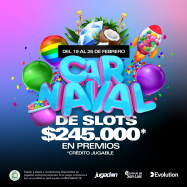 BASES Y CONDICIONES CARNAVAL DE SLOTS A REALIZARSE EN JUGADON.COM PRIMERA: SLOTS MACHINES S.A., CON DOMICILIO EN GRANADERO P. OLGUÍN N° 234, CIUDAD DE SAN LUIS REALIZA ESTA PROMOCIÓN EXCLUSIVAMENTE EN LA PROVINCIA DE SAN LUIS A REALIZARSE DESDE EL DÍA 19 DE FEBRERO DE 2024 VIGENTE DESDE LAS 00:00 HORAS, HASTA LAS 23:59 HORAS DEL DÍA 25 DE FEBRERO DE 2024, CITADO ...