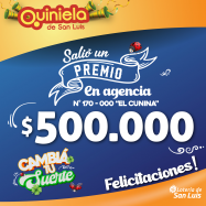 ¡Salió un premio de Quiniela en Tilisarao!   El día Jueves 15 de Febrero en la agencia Nº 170-000 "El Cunina" de Tilisarao salió un premio de Quiniela de $500.000   ¡Felicitaciones al afortunado ganador!