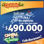 ¡Salió un premio de Redoblona en San Luis!   El día Viernes 23 de Febrero en la agencia Nº 185-000 "San Cono" de San Luis salió un premio de Redoblona de $490.000   ¡Felicitaciones al afortunado ganador!