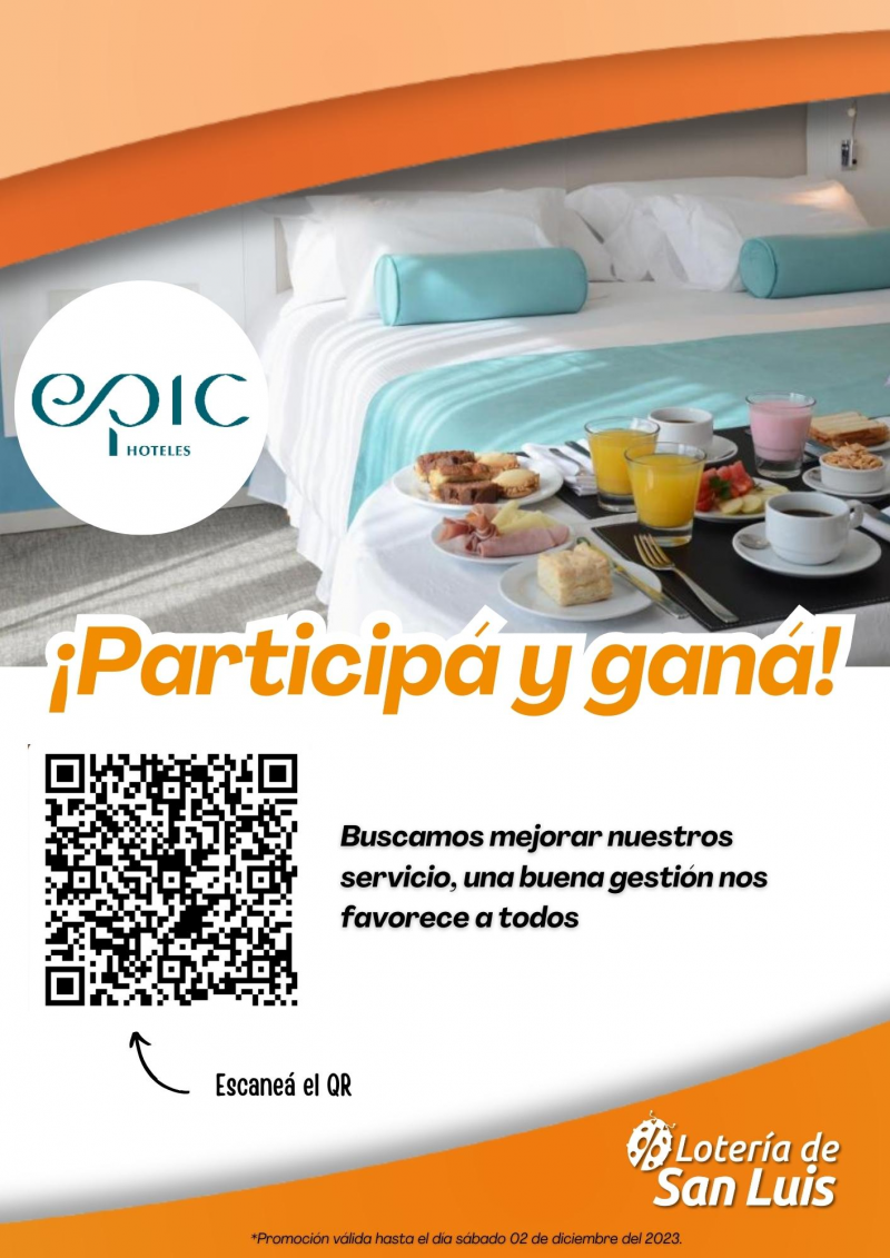 - DOS NOCHES EN CUALQUIER EPIC HOTEL UBICADO DENTRO DE LA PROVINCIA DE SAN LUIS, CON DESYUNO INCLUIDO PARA DOS PERSONAS.