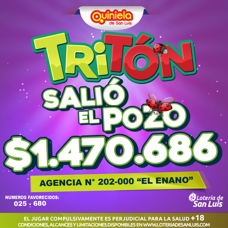 En el sorteo "Nocturno" del día Miércoles 10 de Diciembre, hubo un ganador del pozo del Tritón.