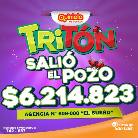 En el sorteo "El Primero" del día Viernes 03 de Octubre, hubo un ganador del pozo del Tritón con los números: 742 - 687